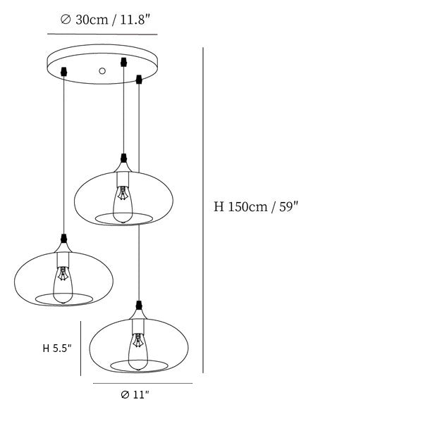 3 Heads E Round Canopy Size: Dia 30cm x H 150cm / ∅ 11.8″ x H 59″