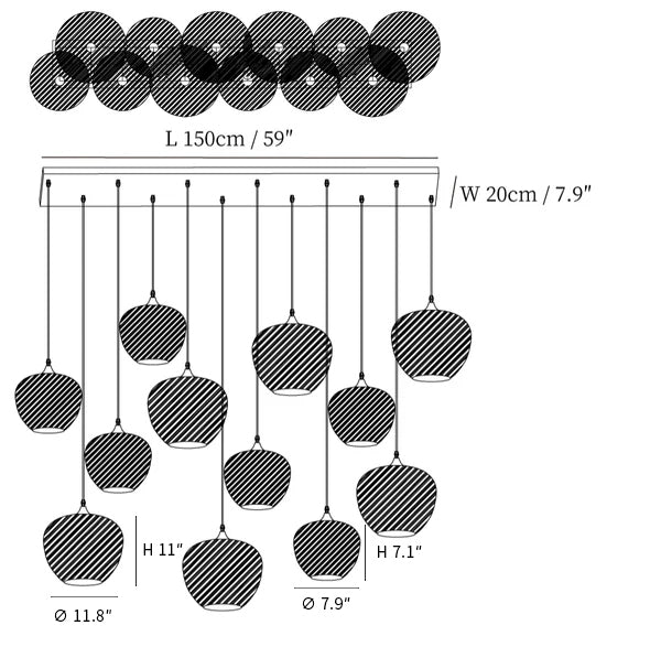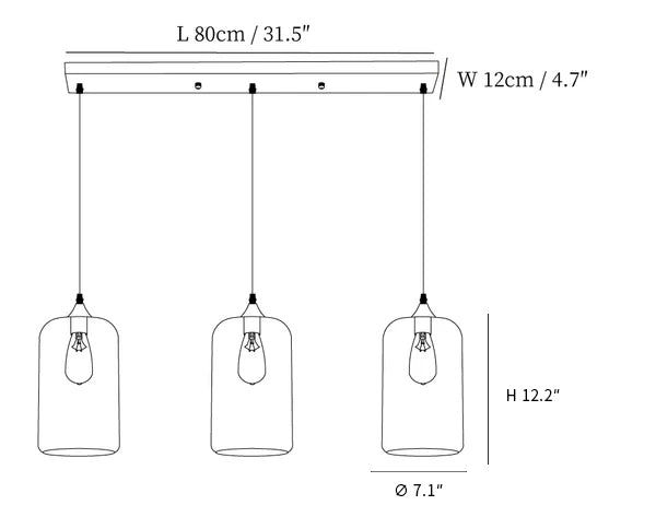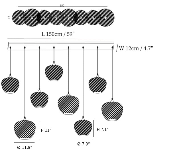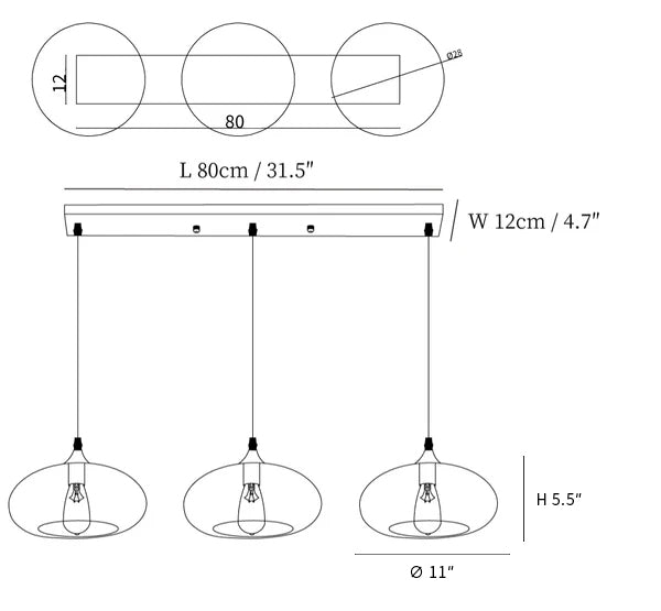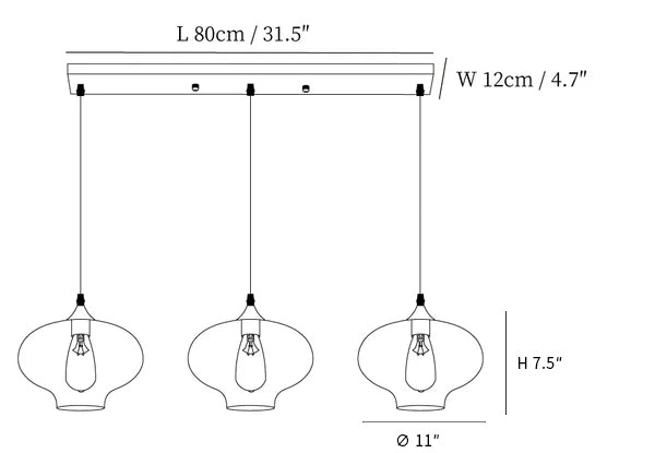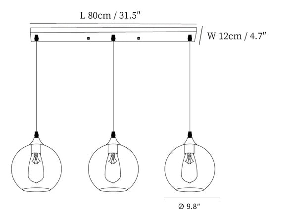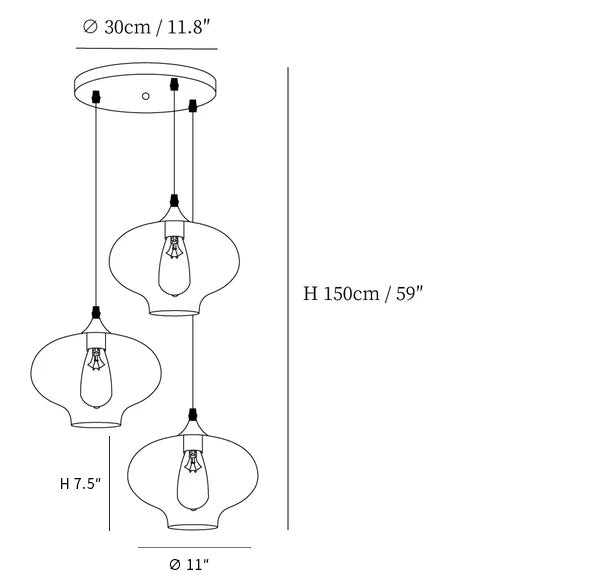 3 Heads D Round Canopy Size: Dia 30cm x H 150cm / ∅ 11.8″ x H 59″