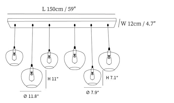 6 Heads Combo1 Rectangle Canopy Size: L 150cm x W 12cm / L 59″ x W 4.7″