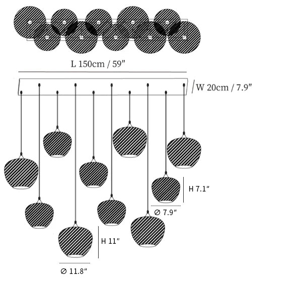 10 Heads Combo1 Rectangle Canopy Size: L 150cm x W 20cm / L 59″ x W 7.9″