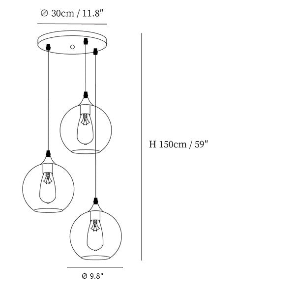 3 Heads B Round Canopy Size: Dia 30cm x H 150cm / ∅ 11.8″ x H 59″